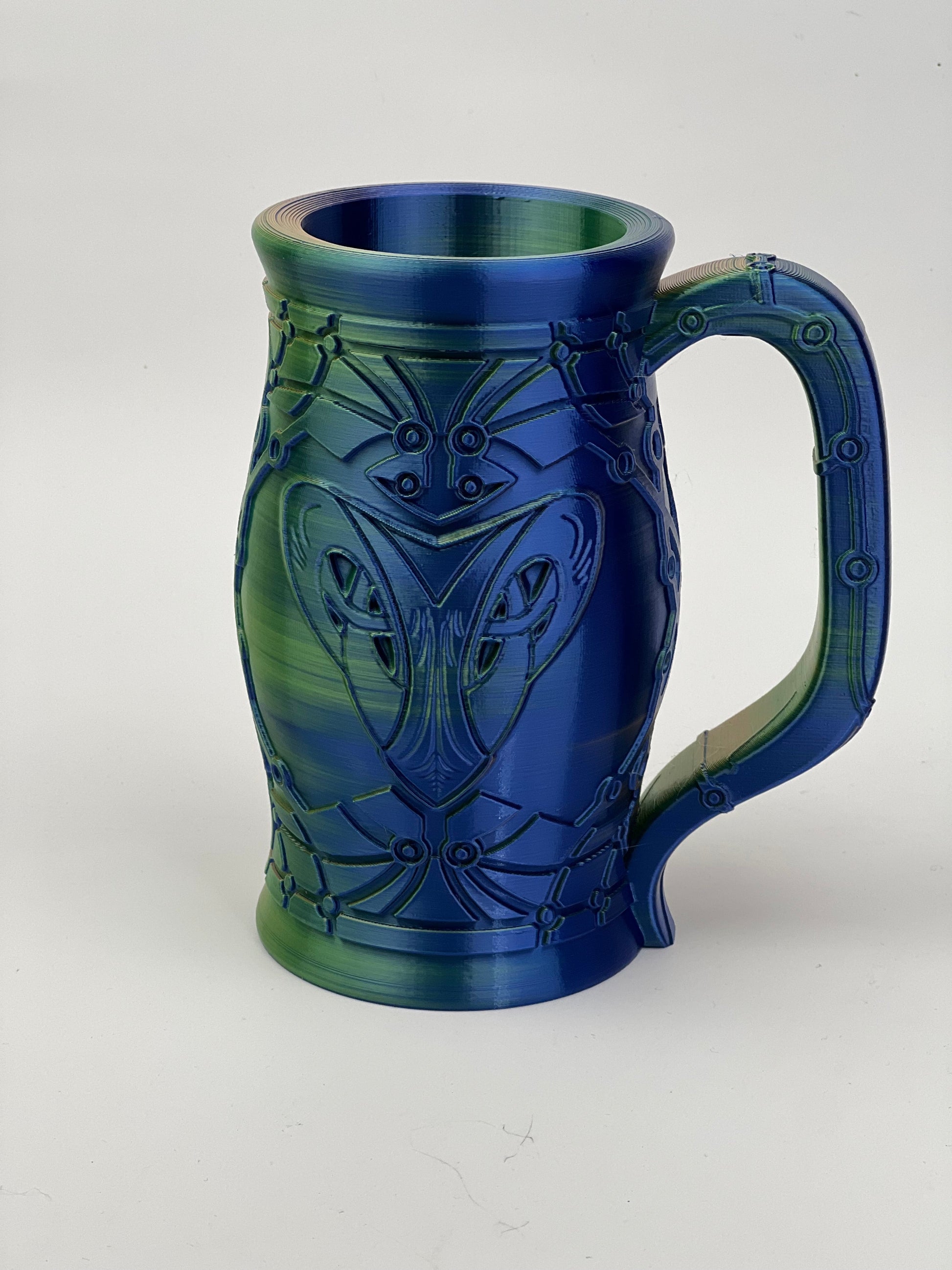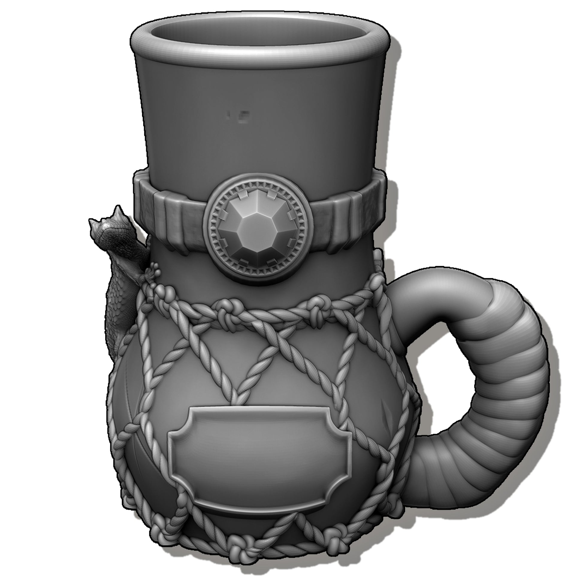 The Wizard’s mug is among our favorites, a magic potion bottle, decorated in fine rope and jewelry, as well as a tiny gecko familiar! Be sure to name him when you print the mug!