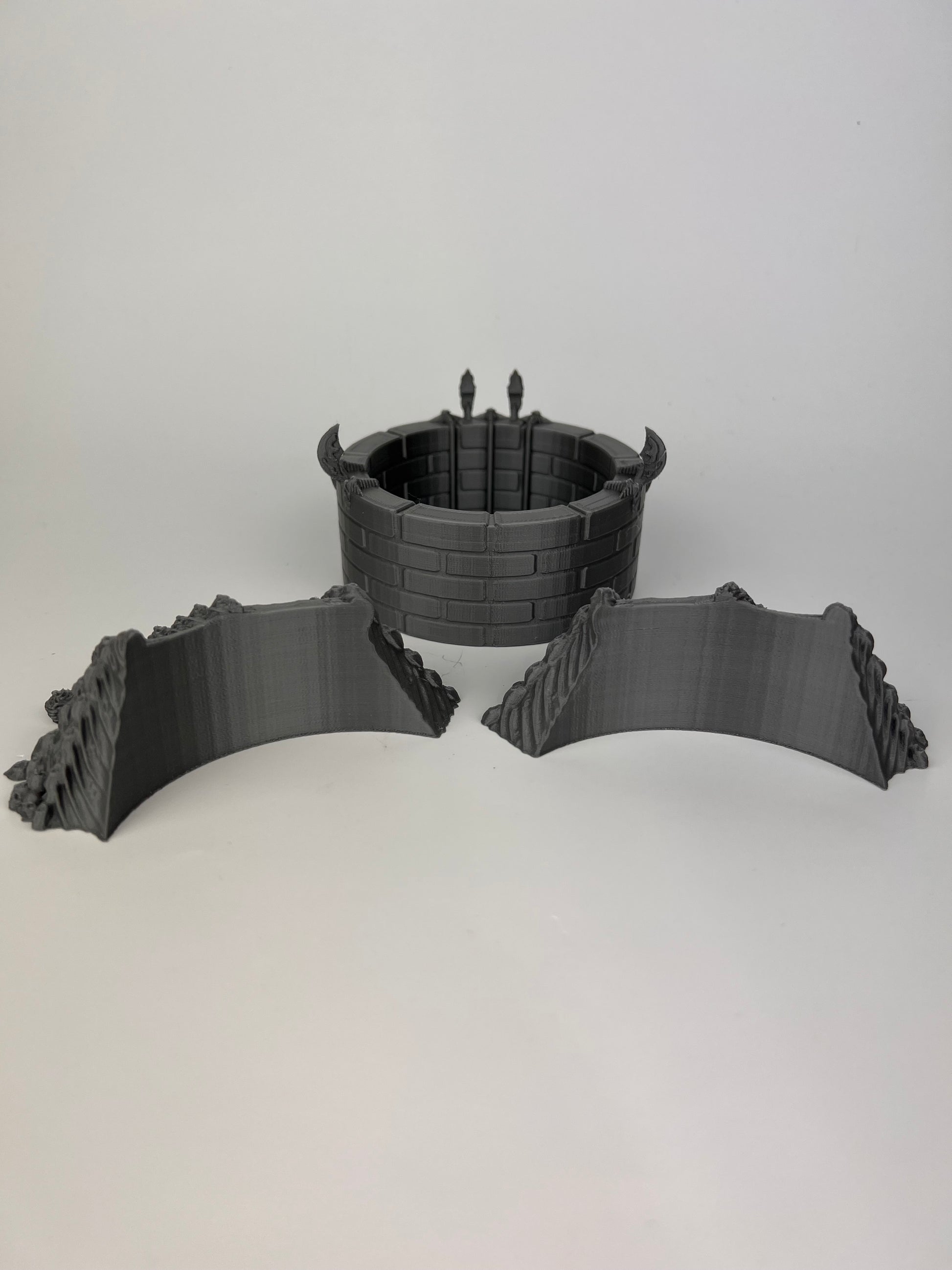 This is a Design by EC3D. This is part of the Mind Horror terrain set and is the center piece. This is an easy to transport easy to assemble set for any dungeon master. all pieces come apart to make it fit easily in just about any size bag. This comes unassembled, with 7 pieces and roughly takes up about 10 square inches of your gaming table. For custom colors beyond what is listed Please Contact Us.