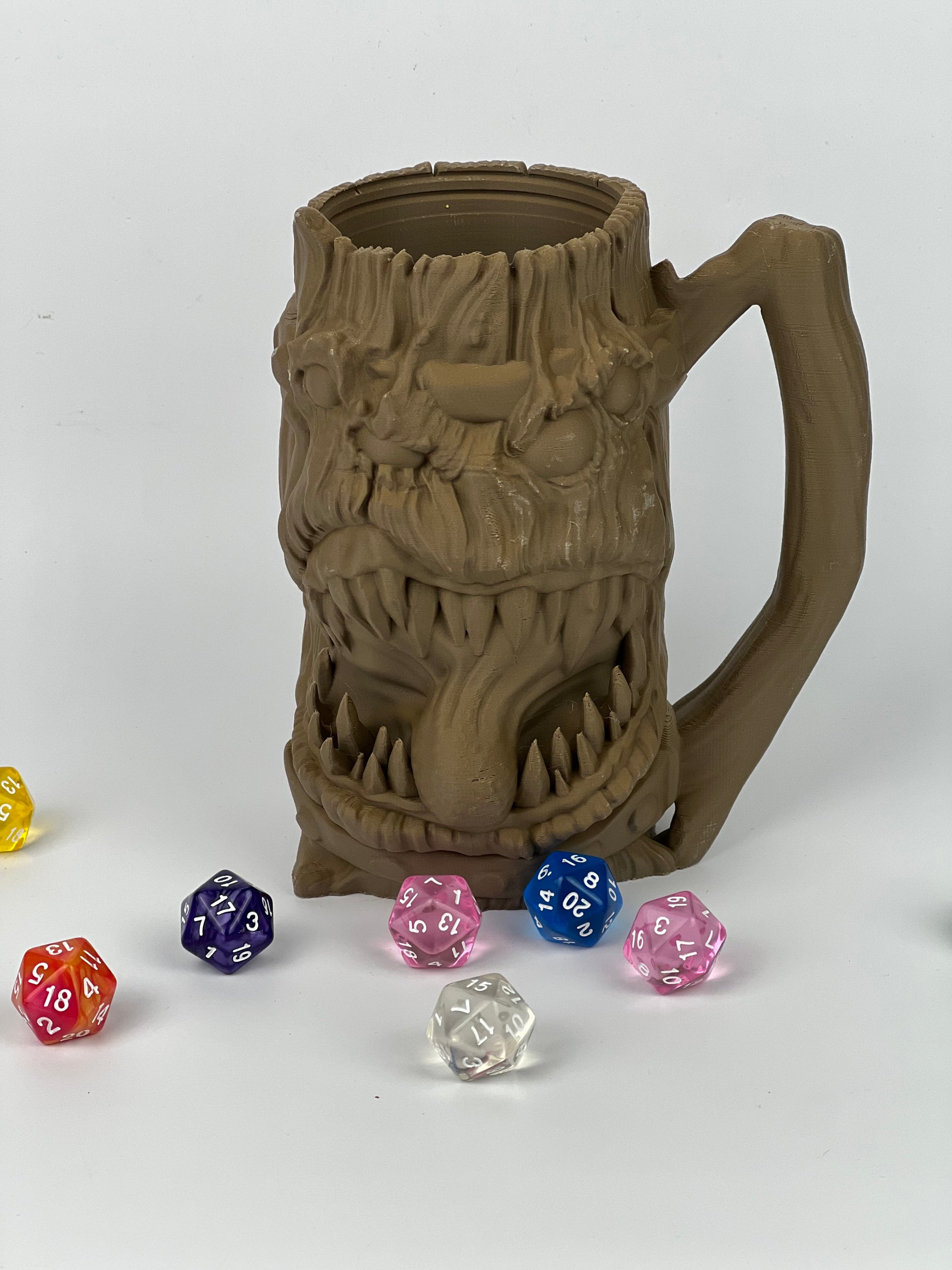 This Mythical Mug also holds the castle dice tower, and is thread for a themed lid or Dice Guardian by Ars Moriendi. It can be used for Cosplay, and to keep you in theme at your local renfaire.